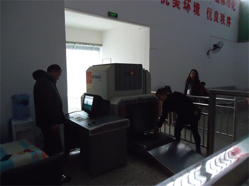 婁底汽車站工作人員認(rèn)真指揮旅客接受行李過機(jī)安檢