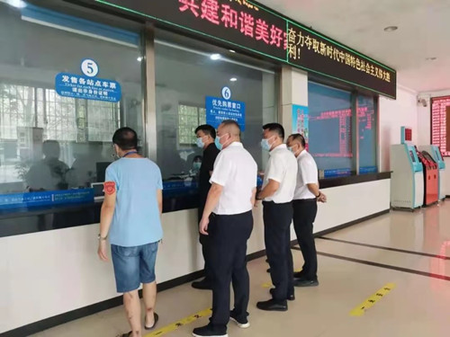 此次督查采取四不兩直的方式,督查組來到婁底汽車南站候車廳,檢查了旅客及司乘人員口罩佩戴、進站健康碼和行程碼查驗、體溫測量等疫情防控工作,何鋒在空調候車廳向旅客親切詢問:到哪里去?車站是否查驗了健康碼、行程碼?是否督促你們佩戴口罩?在聽到旅客滿意的回答后,他來到發(fā)班區(qū),登上了一輛即將發(fā)車的婁底至于塘班車,檢查車輛疫情防控措施落實情況,何鋒對在場人員強調,班車一定要隨車配備測溫槍,切實加強防控措施,確保萬無一失。最后他來到售票廳,對工作人員進行了親切問候,叮囑大家要加強自我保護,并提醒旅客購票保持一米線距離等。
