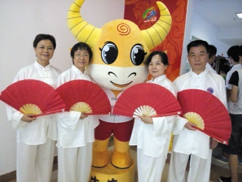 “白袍紅扇功夫令,削撩架推手法精,剛健優(yōu)美韻味純,自強不息太極人”,開幕式的第四個文藝表演節(jié)目,是充滿飄逸美感和武術(shù)剛陽之氣的太極功夫扇隊手持紅扇,伴隨著音樂表演,精彩的表現(xiàn)贏得了觀眾的陣陣掌聲,來自湘運太極站的李定紅、彭玉梅、曾吉福、何文選四人的身影出現(xiàn)在了這支優(yōu)秀的表演隊伍中。這四人通過層層選拔脫穎而出,被選入開幕式太極功夫扇表演隊。為了備戰(zhàn)開幕式表演,在兩個多月排練中,他們克服天氣炎熱、訓(xùn)練強度大等困難,全身心投入到訓(xùn)練中,充分展示了婁底湘運人團結(jié)向上,勇于拼搏的精神。